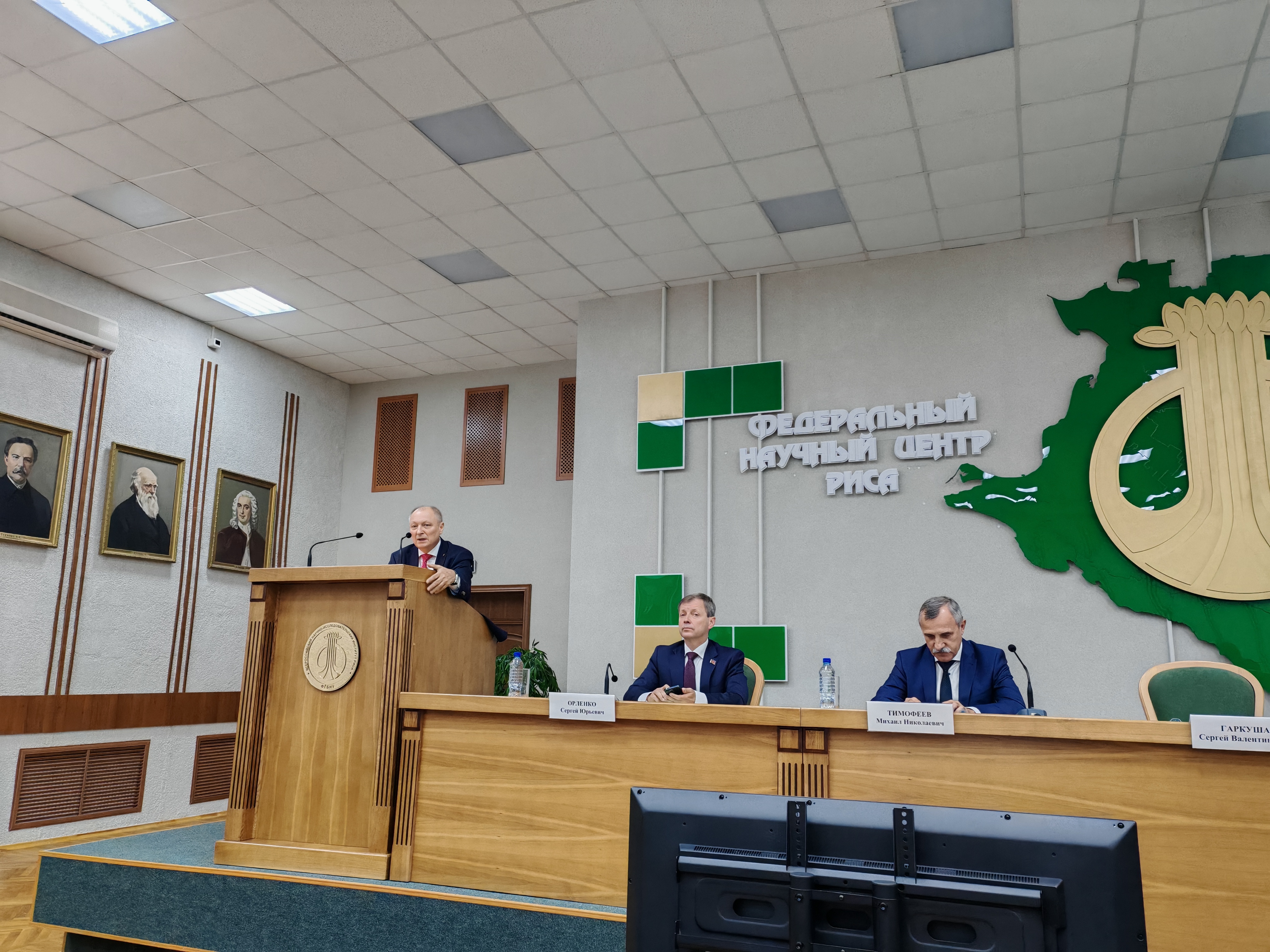 В ФНЦ риса 24 апреля прошло Предпосевное совещание по вопросам сева риса. Открыл совещание заместитель министра сельского хозяйства и перерабатывающей промышленности Краснодарского края Михаил Тимофеев. Он отметил, что в этом году на Кубани будет снижена площадь сева риса по сравнению с прошлым годом с 117 тыс. га до 99 тыс. га. Снижение площадей связано с тем, что на сегодняшний день остаётся около 583 тыс. тонн риса урожая прошлых лет.