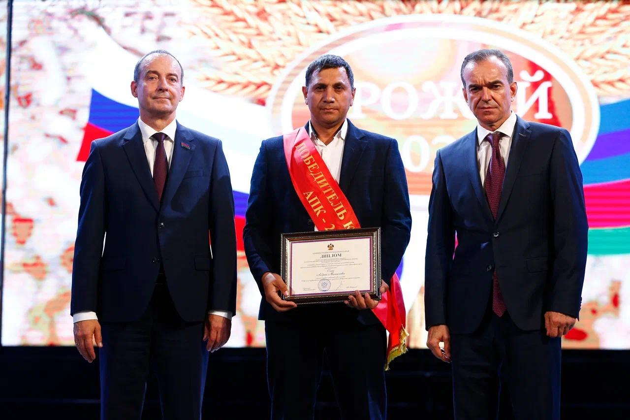 В День урожая наградили лучших работников отрасли, среди них и заведующий отделом селекции Федерального научного центра риса Андрей Оглы, он получил диплом «За заслуги в отрасли агропромышленного комплекса».