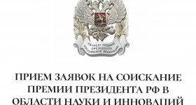 Прием заявок на соискание премии Президента РФ в области науки и...