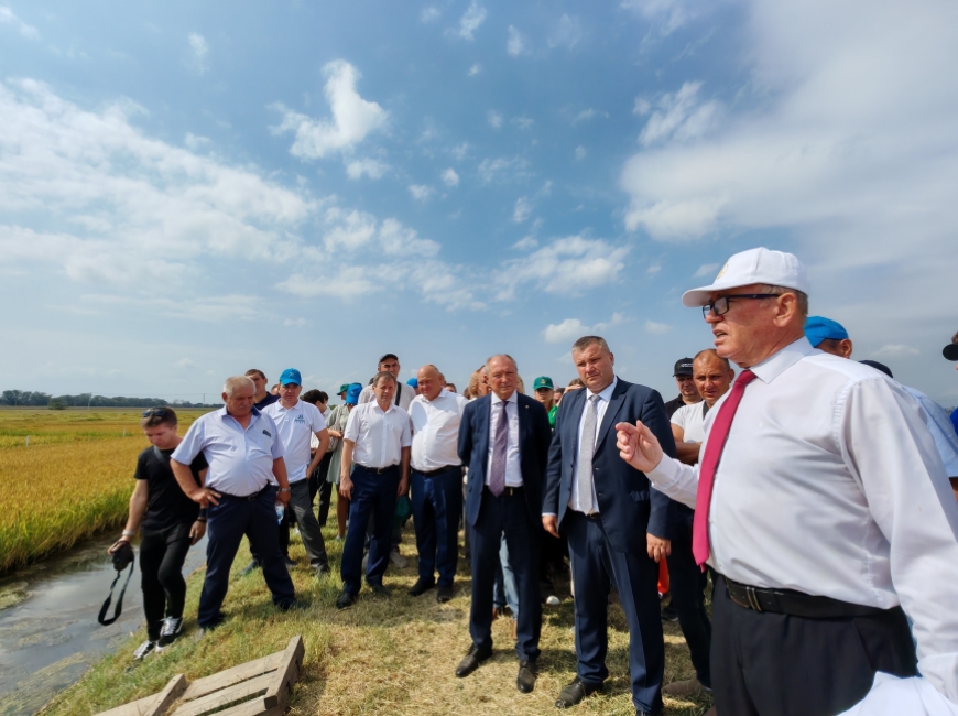 После смотра полей участники собрались на предуборочном совещании. Министр сельского хозяйства и перерабатывающей промышленности Краснодарского края Федор Дерека напомнил, что перед рисоводами страны стоит серьезная задача – увеличение валового сбора риса до 2 млн тонн к 2030 году. Чтобы выполнить эту задачу необходимо не только увеличить посевные площади, но и прежде всего урожайность зерна.